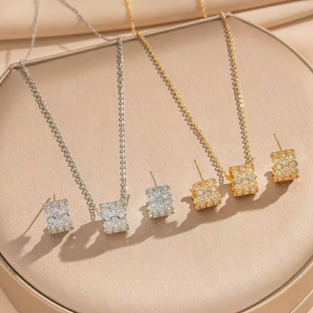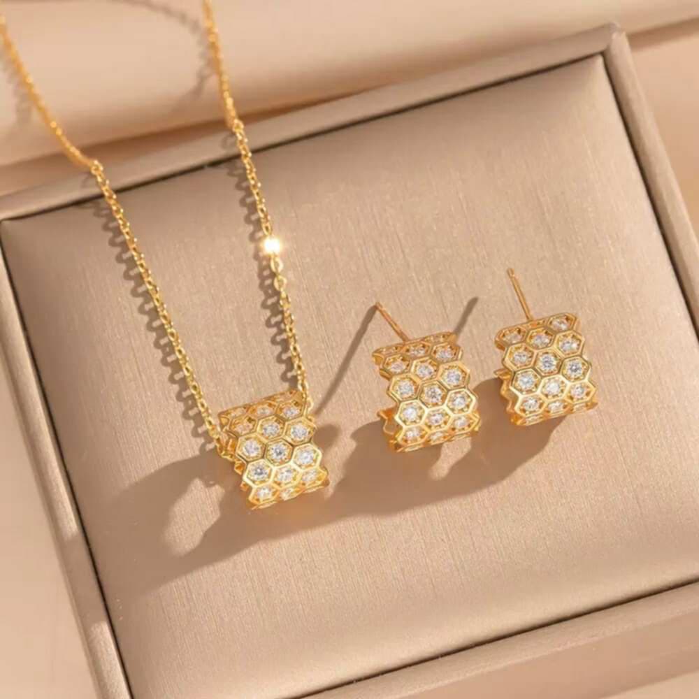 Gold Hexa Spark Stainless Necklace Set